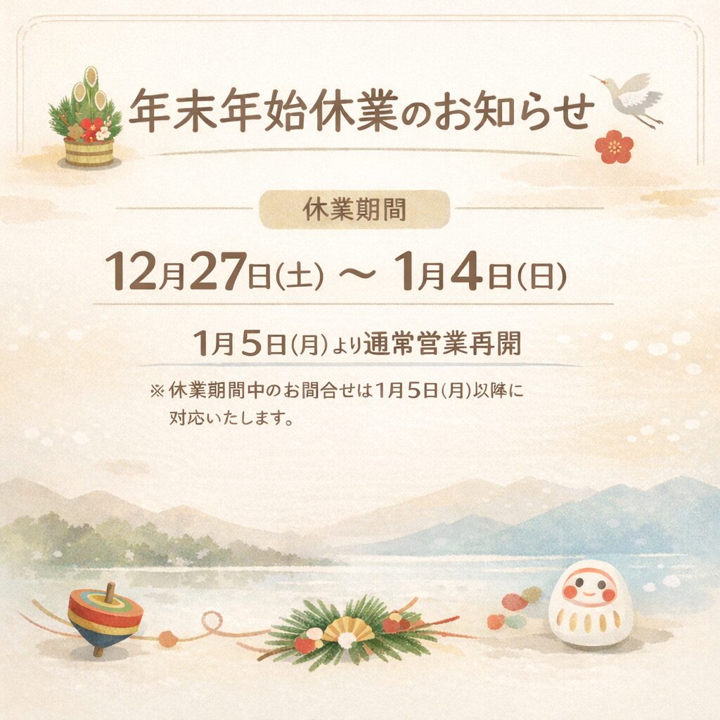 お知らせ 年末年始休業のお知らせ 2025-12-17 2025-12-19 坂下 家庭教育推進協会では、年末年始休業を下記の通り実施いたします。 ■ 年末年始休業期間2025年12月27日(土)~2026年1月4日(日) 1月5日(月)より通常営業を開始いたします。休業期間中にいただいたお問い合わせにつきましては、1月5日(月)以降、順次対応させていただきます。 ご理解のほど、よろしくお願いいたします。